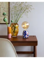 The Confetti glass table lamp brings instant joy to your home. Its playful base is made from hand-blown glass chips to create a confetti-inspired effect with each lamp completely unique in pattern and colour. A colourful flex completes the playful look.