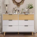 This Livingandhome chic storage cabinet recalls the sophistication of modern-inspired home interior with its pared-down design. The clean white finish, complemented by the unique patterns on the top drawers, creates a visually appealing and versatile addition to contemporary any home setting. Equipped with six generously sized drawers, the cabinet stands firmly on five white tapered legs, elevating it to a convenient height, allowing you to effortlessly reach every spot of the floor during cleanup.