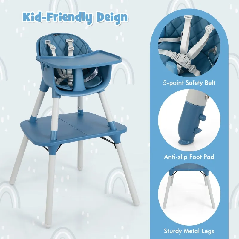 convertible Baby High Chair with 2-Position Removable Tray-Blue