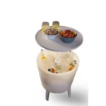 This bbq accessory looks so good on the outside it will make you feel good on the inside with such premium build quality. Ideal for those who love spending time outdoors and want a garden that will wow guests.The Cool collection will effortlessly complement any garden with a sleek design and durable build.Don’t scrimp on the accessories for barbecue season! Highly durable polyester and cotton construction allows you to enjoy garden furniture for longer. The Cool Bar is both a trendy-looking cocktail table and a handy cooler for barbecues and other outdoor events. Simple raise the lid to have it as a tabletop and fill the cooler portion with ice and drinks. The Cool Bar is made of a durable and weather-resistant resin that protects against decay, rust and other weather-related damage. A clip-on LED lighting attachment makes this ideal for use at night, giving a warm cosy glow. Requires 4 x AA Batteries (not included).Product SpecificationProduct Type: Bbq AccessoryMaterial: ResinColour: WhitePattern / Finish: PlainNumber Of Seats: Not ApplicableSeat Style: Not ApplicablePadded Seat: Not ApplicableCushion Colour: Not ApplicableCushion Pattern: Not ApplicableTable Shape: CircleGlass Table Top: NoParasol Included: Not ApplicableAssembly Required: YesAdditional featuresDurable weather-resistant resinLid extends upwards 27cm above rimDoubles as cocktail table and coolerClip-on LED lightingBuilt-in plug for draining waterLockable lid30L capacityAftercare instructions includedDimensions: 84.5 (H) x 49.5 (W) x 49.5 (D) cmLifestyle images and accessories shown are for illustration purposes only.