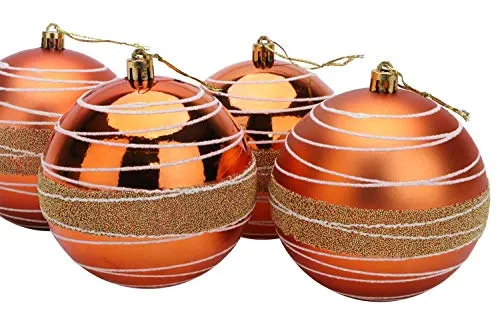 These copper and gold shatterproof baubles will create a gorgeous and eye catching decoration on any Christmas tree this festive season. Not only for use on a X-mas tree, these copper baubles would look great hung up in a garland fashion in a window, or from a mantlepiece. The baubles come in a 5 pack, with 2 being a shiny finish, and 3 having a matt finish. Each bauble has a band around the middle of gold glitter, and are finished with a swirl of white glitter that surrounds the bauble. Each copper bauble comes with a gold top and gold loop for easy hanging. These beautiful Christmas decorations have been designed and manufactured exclusively for Christmas Concepts Ltd.