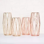 These beautiful geometric style glass flower vases make the perfect decorative item for a home. Add flowers, or greenery to these copper glass vases to bring a beautiful touch to a room. These vases could also be used to display sand, stones, candles or they would look equally as good without anything in, as they are with their geometric style wire frame. Stylish and decorative they would work in any modern interior.