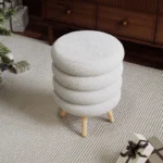 This Livingandhome footstool is subtly fashioned in a minimalistic circular shape, adding a tasteful addition to any room. Covered in sumptuous teddy fabric, plus the innovative shape, this footstool is not only a stylish accessory but also a comfortable footstool or extra seat for your lounge or living room. For a sturdy structure, the footstool is supported by 4 splayed legs made of strong solid wood.
