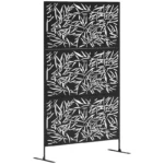 Decorative Garden Privacy Screen with Stand, 6.5FT Freestanding Metal Outdoor Divider, Decorative Privacy Panel with Expansion Screws for Garden Pool Hot Tub, Bamboo Style, Black