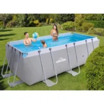 Dellonda DL21 Deluxe Steel Frame Rectangular Swimming Paddling Pool with Filter Pump, 13ft, Grey