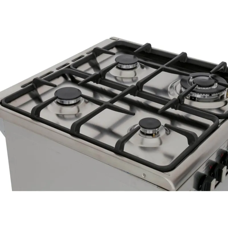 The Delonghi DDC 606-DF 60cm Stainless Steel Freestanding Dual Fuel Double Cooker has four gas burners including one 3.5 kW triple ring burner. All gas rings come with auto ignition and cast iron pan supports. The top oven/grill has a useable capacity of 39 litres while the main fan oven has a capacity of 59 litres and comes complete with a full LED programmer. For ease of cleaning the DDC 606-DF comes with removable inner glass and an internal easy clean enamel coating.