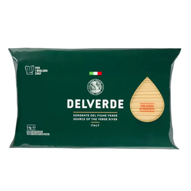 Delverde was established in 1967 in a small town called Fara San Martino, the home of pasta. Natural mineral water, sourced from the Verde River, is the secret of our success and the most important ingredient in Delverde pasta. It has an excellent cooking yield, perfect consistency and texture. It contains the highest quality Durum wheat with a high level of gluten and protein to guarantee a strong and always “al dente “ product. Delverde is made for the best chefs and ideal for everyday preparations. Long, thin dried pastas, like spaghetti, complement simple olive oil or tomato based sauces best, which coat each pasta strand evenly. Pure water – pure taste. Cooking time: 11 ¼ min.