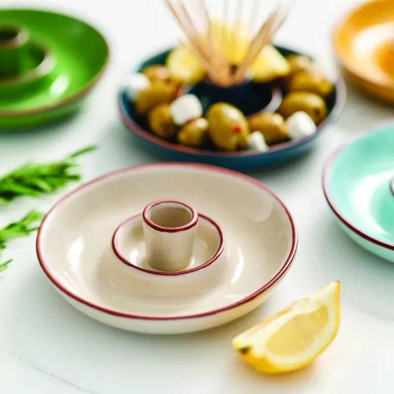 Enjoy Mediterranean style outdoor dining with our multi-coloured glazed terracotta pieces.