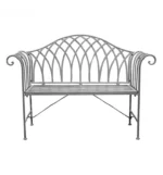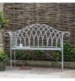 Featuring unique rounded metal arms this stylish metal bench creates a comfortable casual seating area in any outdoor living space, in a distressed, painted grey finish