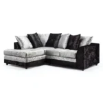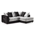 Dyla Crushed Velvet Corner Sofa – Black/Silver