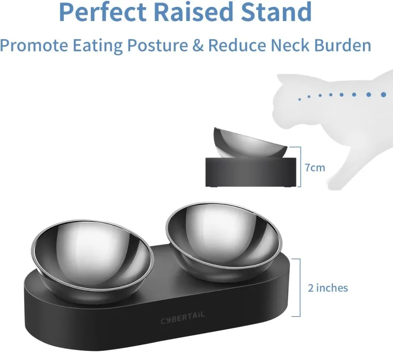 • EASILY ASSEMBLE AND DETACHABLE: Simply put the stainless steel double bowls into stand and keep secure in place. This elevated cat bowls are detachable and dishwasher safe, ideal for most cats and small dog