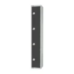 The grey 4 door locker from Elite features a highly durable steel construction and an antibacterial powder coating which can resist MRSA and e-coli. With outstanding hygienic properties, the lockers are perfect for changing room areas where a high standard of sanitation must be observed at all times such as schools, gyms and swimming pools. With pre-drilled holes, the lockers can also be fixed against a wall or nested together to make the best use of your available space.