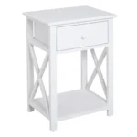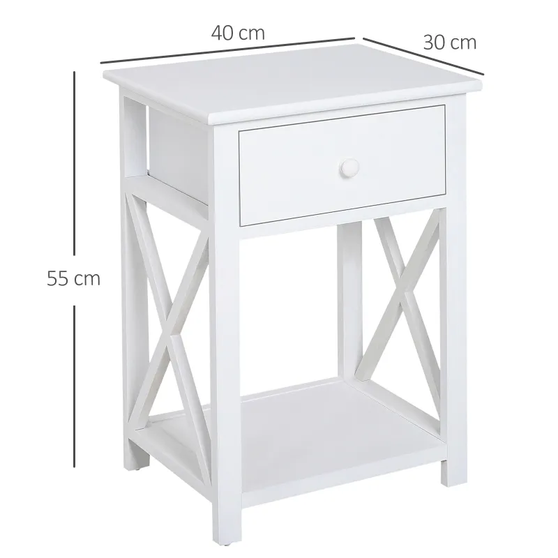 Bring simple beauty into your home with this side table from HOMCOM. Made from MDF for a sturdy structure, it is crafted into a simple, yet beautiful design, making it a welcome addition to any room. It features an open bottom shelf and a top drawer, giving you lots of storage space to keep the area neat and tidy. The frame is given extra strength with the side cross bars, helping to keep the shape unified. The perfect piece to enhance your home and beyond.