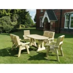 Enjoy drinks, snacks and meals with family and friends with this patio dining set. Practical and comfortable with a spacious, sturdy table and well-designed chairs. This versatile outdoor furniture set can transform and improve any patio or garden area. Wood, with the right care and attention, solid wooden garden furniture can last a lifetime. It doesnâ’t rust like metal and neither will it lose its colour in the sun like some plastic garden furniture. You and 5 others will be able to relax, enjoy snacks, and chat in the sunshine.