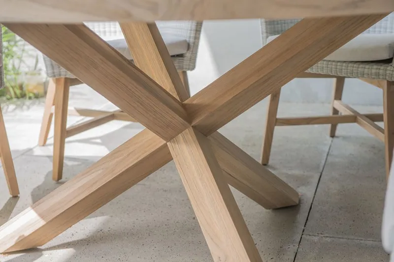 EX-DISPLAY – Avila 6 Seat Outdoor Dining with Louvre 160cm Round Teak Table | 4 Seasons Outdoor
