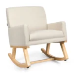 This rocking chair will offer you extra comfort and new sitting experience. Do not hesitate to buy it now! Comfortable Rocking Experience: Equipped with two loop rocker feet that connected with one horizontal wooden bar, this rocking chair will give you comfort and safety sitting experience. There are four protective pads at the base bottom to prevent the floor from being scratched while the chair is rocking. Sturdy & Durable Construction: The entire frame is made of solid wood which is sturdy enough to support up to 120kg and durable for long time use. Covered with high-quality fabric and filled with high-density and soft sponges, this chair provides you with a comfortable and soft sitting experience. High Backrest and Cozy Armrest: This ergonomic chair can give you strong support for your whole body. Wide and high backrest provides you with great comfort and when you lean on it or rock it. What’s more, padded armrest compared with other wood armrest is more comfortable and ergonomic. Thickly Padded Seat Cushion: Designed with a thick cushion and high-density sponge inside, the whole recreational rocking chair is soft enough for you to enjoy yourself and relax your body after tiring work. Its fabric slipcover is wear-resistant and skin-friendly. Simple Assembly and Maintenance: Provide with detailed instruction, the leisure chair can be installed in a short time. Because of its smooth surface, this chair is easy to maintain and clean.