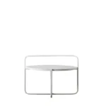 Add a contemporary touch to a room with this stylish coffee table. The stunning design features a continuation of one section of the metal base, up and over the table to create a ‘handle’ effect. There is a matching side table, and both are also available in grey and black.