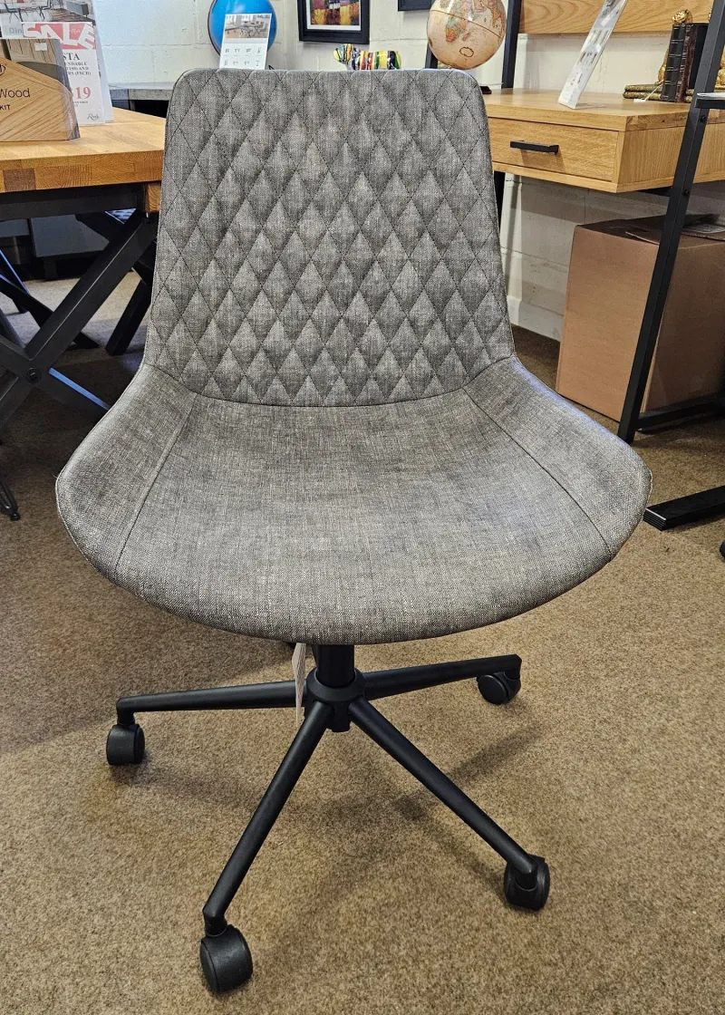 The Adjustable Fiesta Swivel Office Chair has been designed with a trendy industrial style and is finished in grey faux leather.