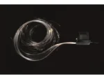 The pack contains 112 fibre optic tails in 4 lengths: 1.25m, 1.5m, 1.75m and 2.0m. This allows the control box to sit centrally to the spread of tails. It displays a white twinkle effect which can also be held on white if desired. Drill diameter for the end fitting is between 1mm and 3mm. Control box dimensions are 132mm x 67mm x 98mm.