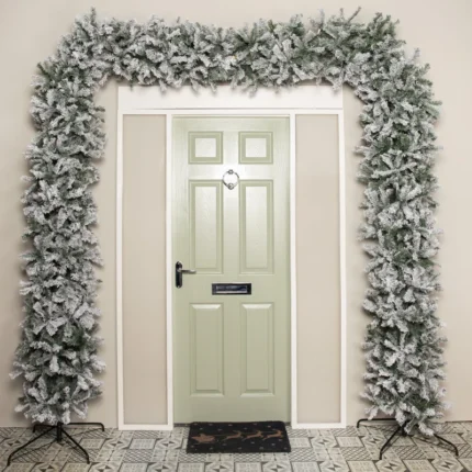 8ft (2.55m) Double Door Artificial Snow Flocked Christmas Tree Arch in Green with 2000 Tips
