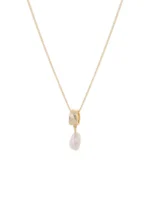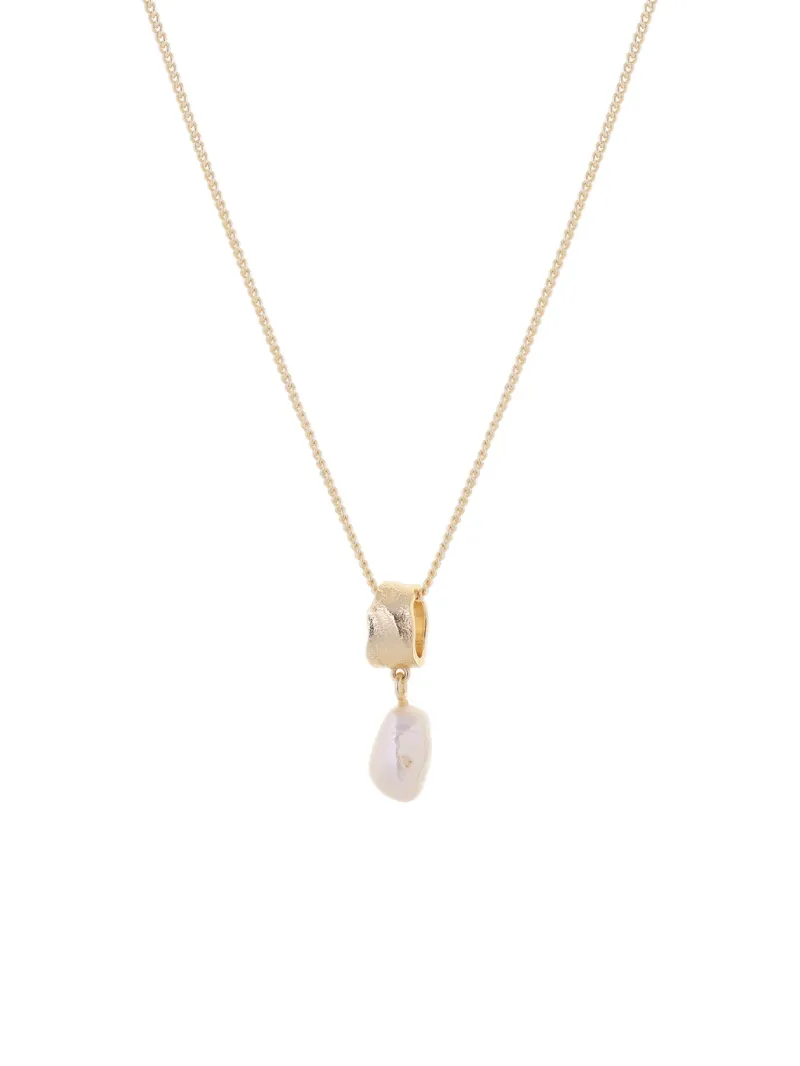 Textured pendant with Freshwater Pearl drop. Handconstructed from Recycled & Traceable Materials. Brass base plated with Gold and Freshwater Pearl.