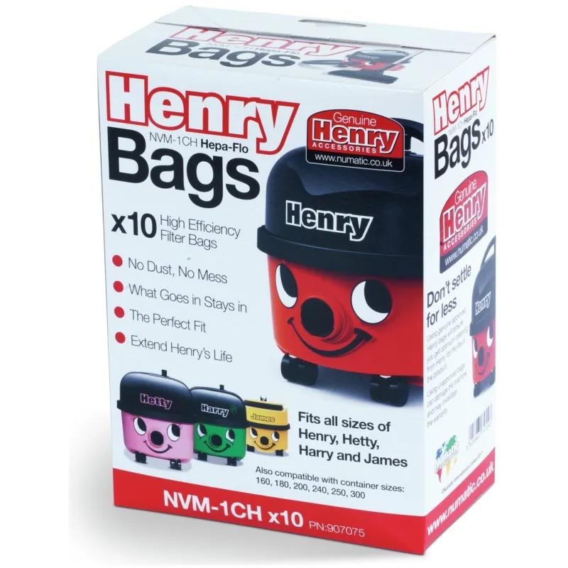 Genuine Henry Bags Pack Of 10 Dustbags – NVM1CH – Henry, Hetty, Basil, Harry, James Bags