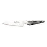 The GS-35 is a mini Santoku knife, useful for cutting up small vegetables and fruit. Like its big brother the G-46, the knife is suitable for the three ways of the Santoku, slicing, dicing and mincing. The knife has a relatively flat blade for cutting and makes a good alternative to the better known GS-5. The GS-35 is also available in a fluted version as the GS-37.