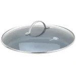 Greenpan glass lids are a great addition to your pan. Safely see your food as it cooks, monitoring its progress. The glass lid is perfect for avoiding fat and oil splatter, and the close fit keeps in heat & moisture. The tempered glass can go in the oven and is easy to clean – it can even go in the dishwasher.