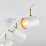 Adjustable LED spotlight finished in matt white and satin gold effect trim. An energy efficient fitting which is also available in single and triple options