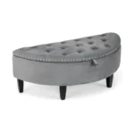 Half Moon Storage Bench Velvet Upholstered Ottoman Bench-Grey