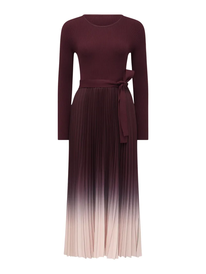 Harmony Crew Neck Ombre Pleated Midi Dress