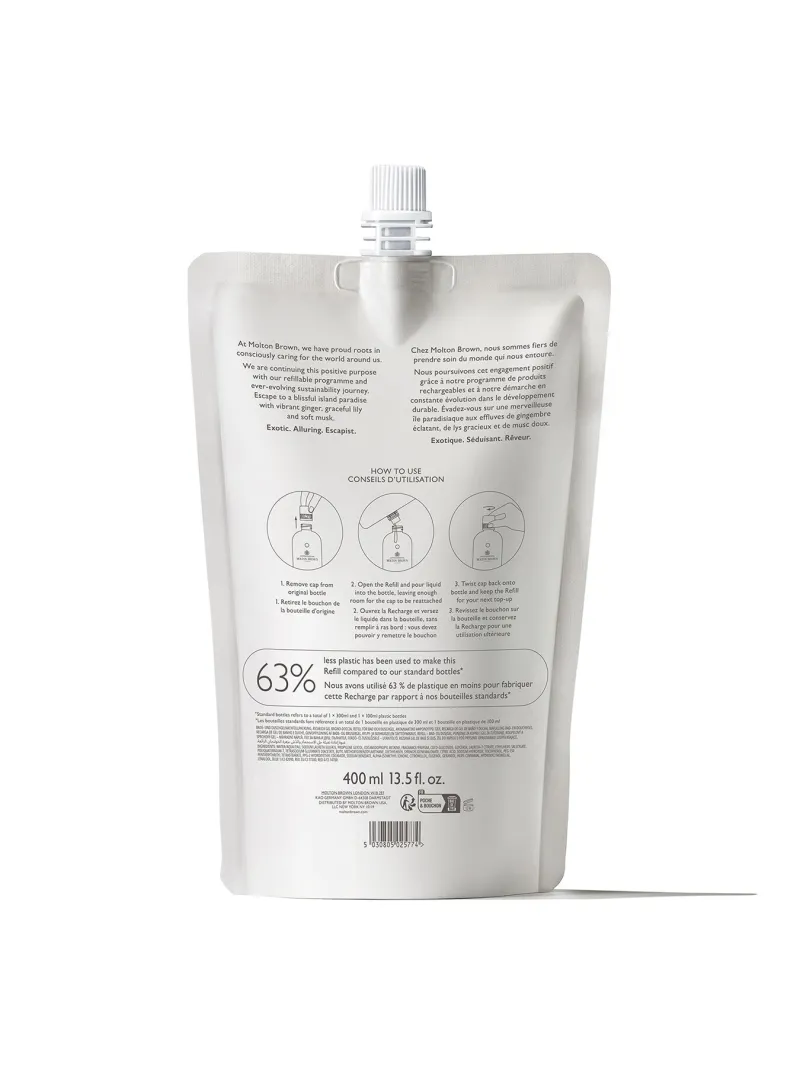 Indulge in an earth-kind bathing ritual with our plastic-reducing Refill in your favourite white-floral body wash – a sensuous fragrance of vibrant ginger, elegant lily and soft musk.
