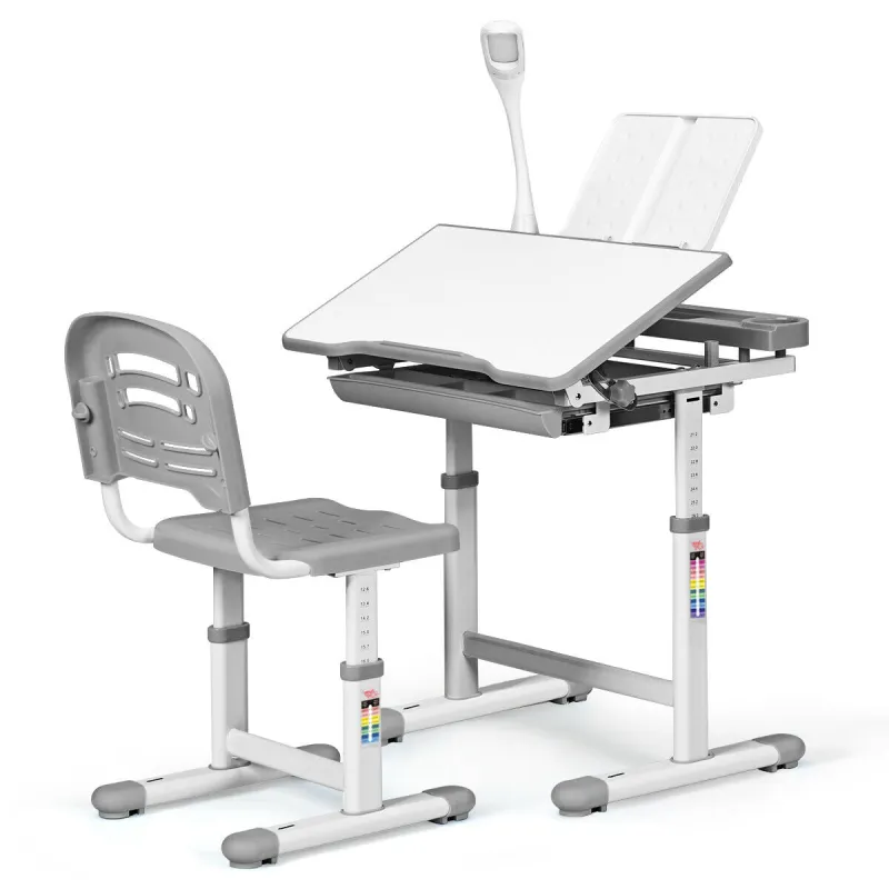 Height Adjustable Kids Study Desk Table Chair Set with Lamp-Grey