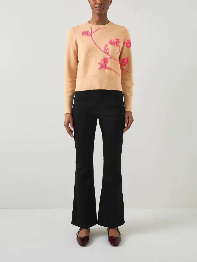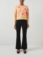Henrietta Camel & Bright Pink Flower Detail Jumper