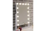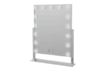 A larger adjustable mirror, this swivel style, light-up, mirror will work beautifully on a dressing table or in a salon environment. A portrait-oriented mirror it features 15 large cool touch LED bulbs and touch control enable easy turning on and off. The mirror is beautifully framed in a sturdy white metal stand, with a solid base. The LED bulbs feature three fabulous colour settings from ice white, cool blue to warm yellow, again with just a gentle touch of the mirror you have the power to change the colour to suit the occasions requirements, daytime, office or evening in a restaurant.