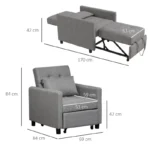 HOMCOM 3-In-1 Chair Bed, Convertible Sleeper Chair with Adjustable Backrest, Pillow and Footrest for Living Room, Grey