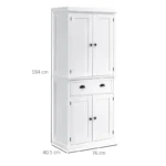 HOMCOM Freestanding Kitchen Cupboard, 184cm Tall Storage Cabinet with Doors and Shelves, Traditional Colonial 4-Door Kitchen Pantry Cupboard with Drawer, White