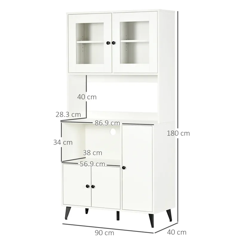 HOMCOM Freestanding Kitchen Cupboard, Modern Kitchen Storage Cabinet with Doors and Adjustable Shelves, 180cm, White