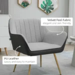 This HOMCOM armchair for living room transforms any space into a comfortable area. The wide seat design, with thick padding and a firm back keeps you comfortable and supported. Four gold tone steel legs keep the bedroom chair supported as you sit. Its faux leather and velvet-feel upholstery combo make this velvet chair a bold addition you’ll love having in your home.