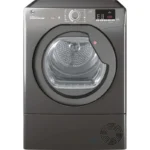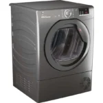 The Hoover HLE C9DRGR-80 9kg Condenser Tumble Dryer in Graphite offers efficient drying for your laundry. With Wi-Fi and Bluetooth connectivity, you can control and monitor cycles via the hOn App. Features include sensor drying, anti-allergy programme, and an anti-crease function for effortless laundry care.