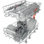 The new dishwasher allows maximum load flexibility with 13, 14 and 15 covers. Each configuration is equipped with mobile elements for an efficient arrangement of your dishes. The adjustable parts are also colour coded, making the user experience even more accessible.