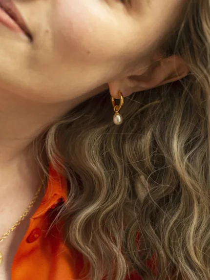 Button Pearl Square Small Hoop Earrings