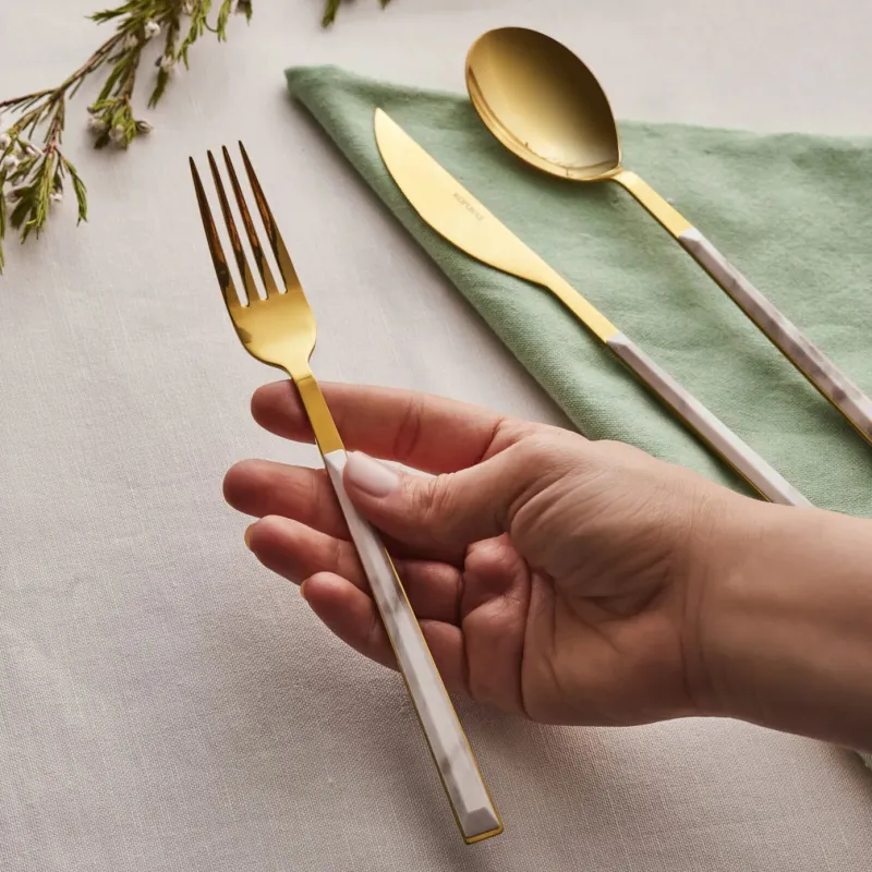 Karaca Arete 18-Piece Stainless Steel Cutlery Set for 6 People, Gold Multi