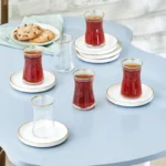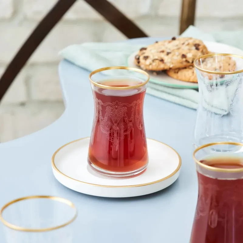 Karaca Athen 12 Piece Glass Turkish Tea Set for 6 People, 110ml, White Gold