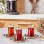 Karaca Black Gold 12 Piece Glass Turkish Tea Set for 6 People, Multi
