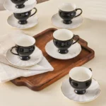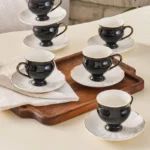 Karaca Black Swan 12 Piece Porcelain Espresso Turkish Coffee Cup Set for 6 People, 100ml, Black White