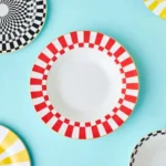 Karaca Circus Porcelain Pasta Bowl, 20cm, Red White Gold