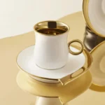 Karaca Dela 4 Piece Porcelain Espresso Turkish Coffee Cup for 2 People, 80ml, White Gold