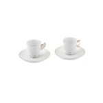 Karaca Egypt 4 Piece Porcelain Turkish Coffee Cup Set for 2 People, 80ml, White Gold