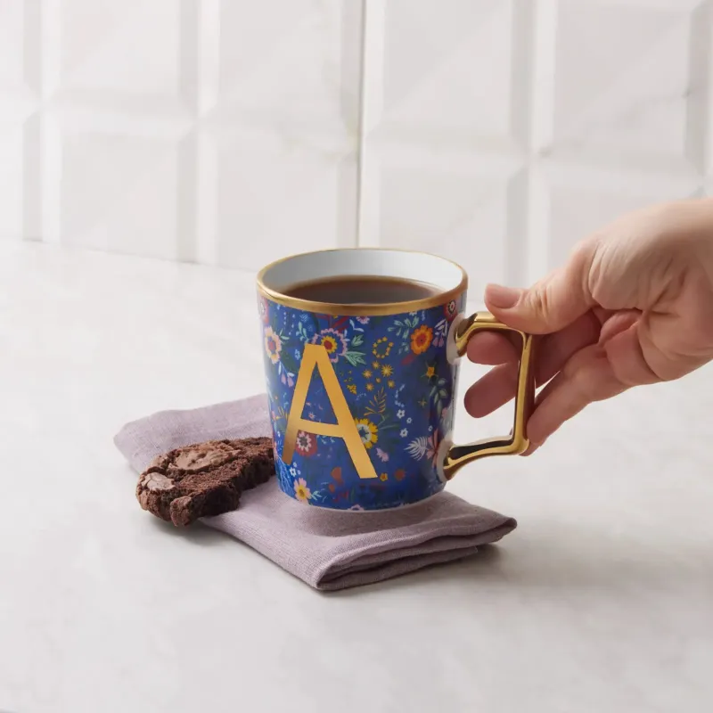 Karaca Flower Porcelain Letter A Mug, 350ml, Multi